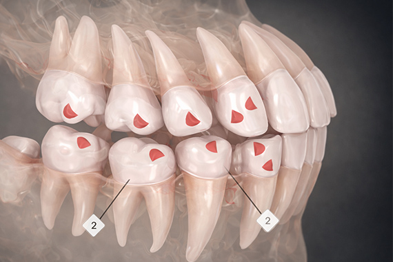 何枚ものマウスピースを順次取り替えることで、少しずつ歯を移動させます。一定期間内の歯の移動距離が小さく、痛みや違和感が少ない矯正治療法です。