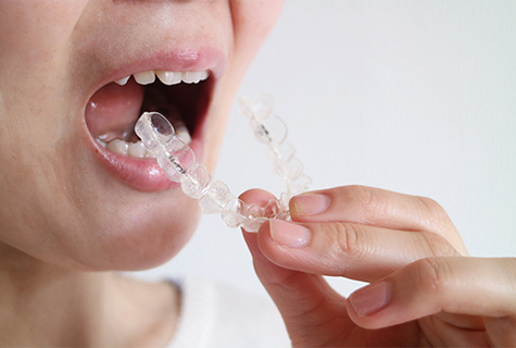 マウスピースはご自身で簡単に取り外せます。普段通りに食事や歯みがきができ、装置に食べ物が挟まるといった心配もなく衛生的です。